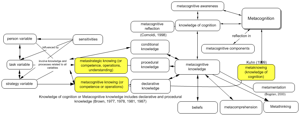8.75 Metacognitive knowing is knowing about and reflection on objects of knowledge, including beliefs about this knowledge.