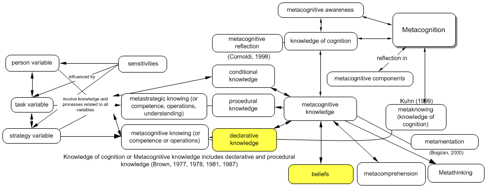 9.9 Knowledge of oneself or self-knowledge and knowledge of others as cognitive beings is categorised as the person subcategory of declarative knowledge or person metacognitive knowledge. (HOA.30)